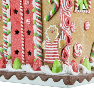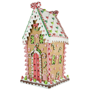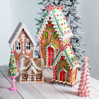 A unique multi-color cookie house, that adds an adorable amusement to the traditional definition of festive gingerbread houses. With LED pink combination detailing along the adorable accents like the pom-pom candy pebble railing and a happy gingerbread man at the door, this festive table top is an absolute must-have this festive season.