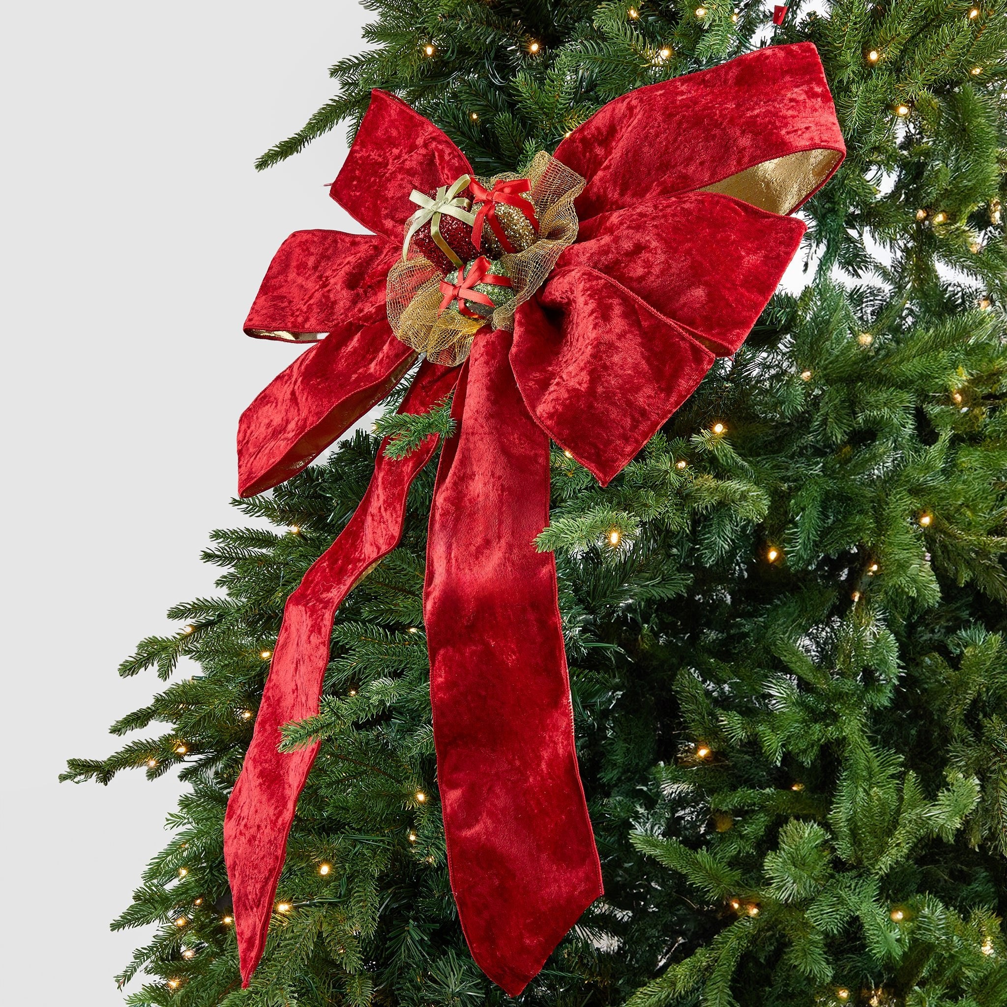Indulge in luxury with our Red Velvet & Gold Festive Bow. Made with rich red velvet and adorned with gold details, this bow adds an elegant touch to any gift or holiday decoration. Elevate your festivities with this exclusive and sophisticated accessory.