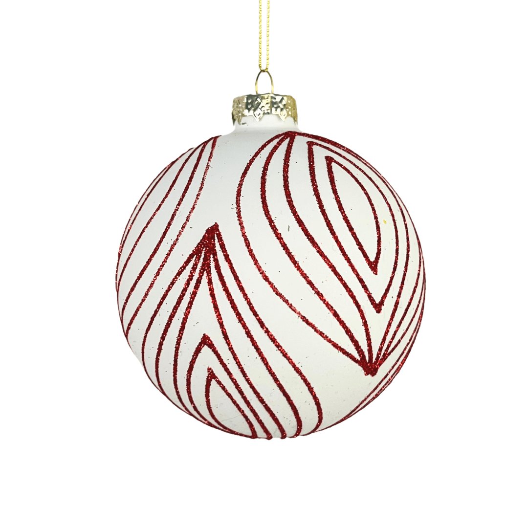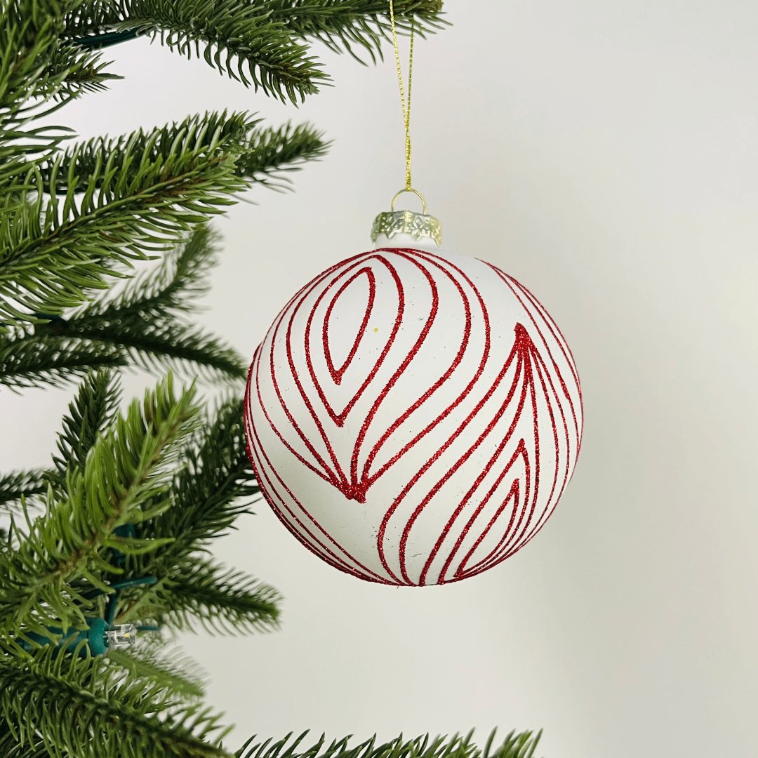 Add the brilliant colors of this matte white ball ornament with red glitter gilded stripe detailing to your Christmas decorations this festive season in Dubai and welcome home joyous festivities in a grandiose manner.