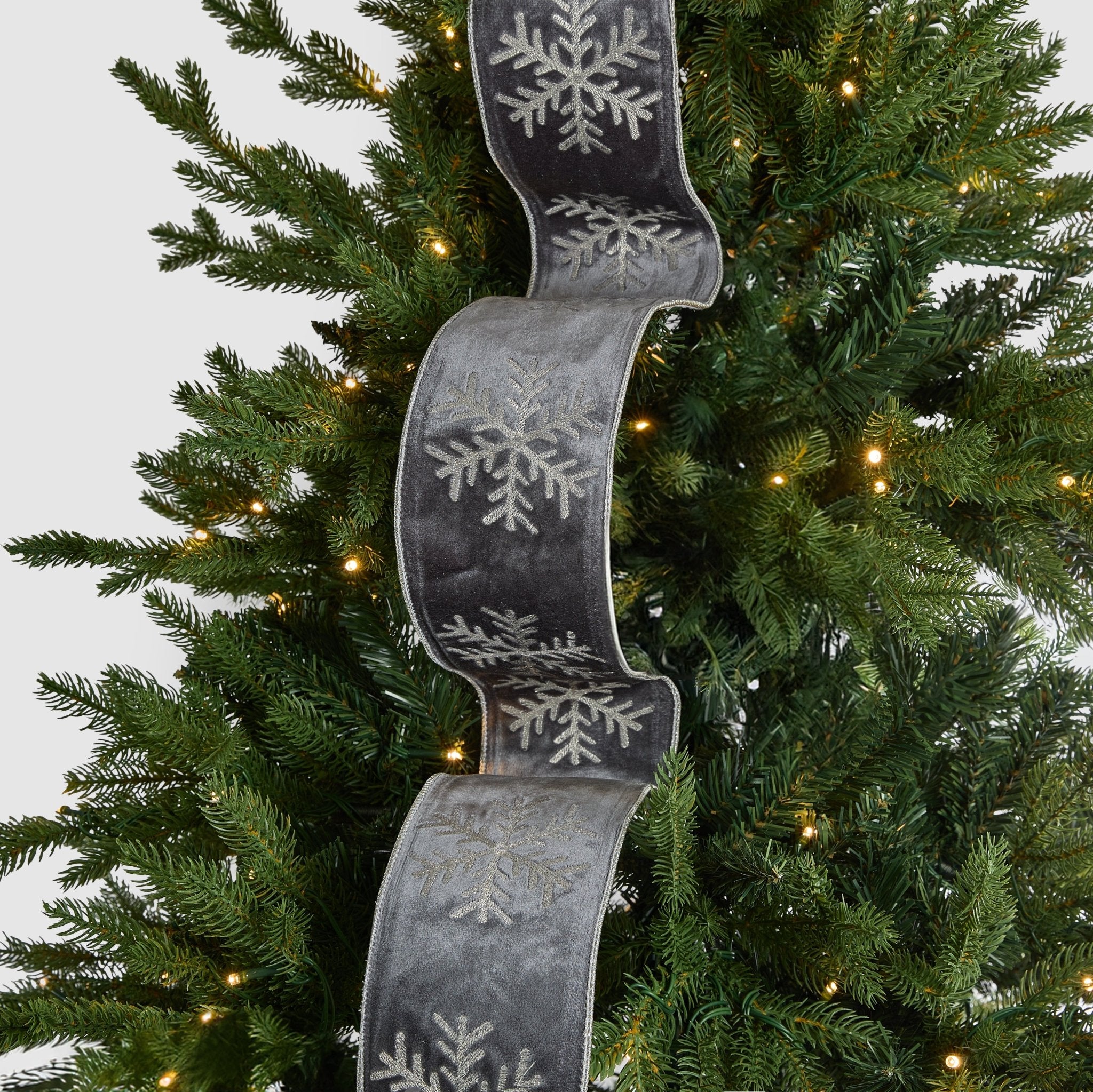 Add a touch of winter magic to your holiday decor with our Glittered Snowflake Velvet Ribbon. This luxurious velvet ribbon features sparkling snowflake accents that catch the light beautifully, creating an enchanting effect on wreaths, gifts, or Christmas trees. The premium quality ensures it drapes elegantly while the festive design transforms ordinary decorations into stunning seasonal displays.