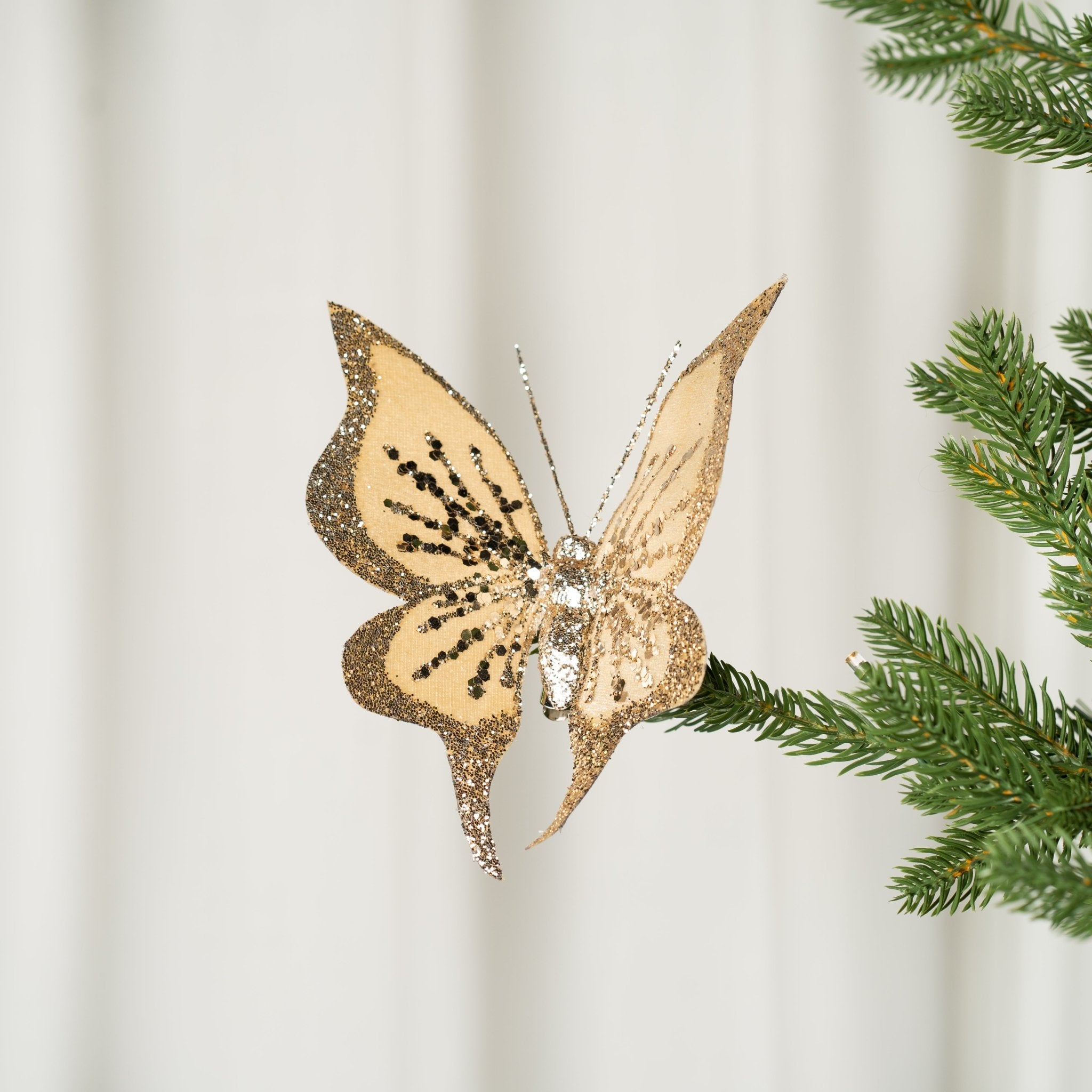 Gold Butterfly Christmas Ornament with Glitter