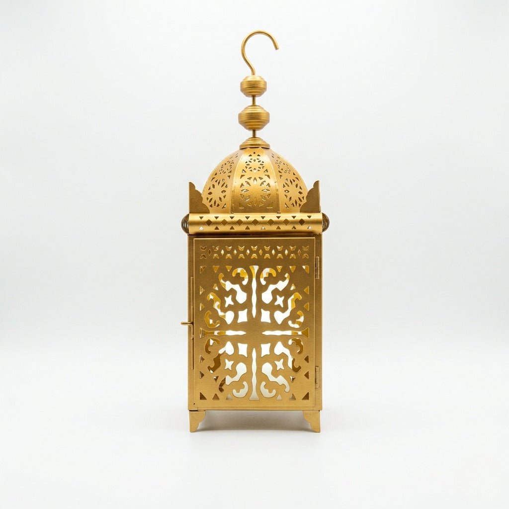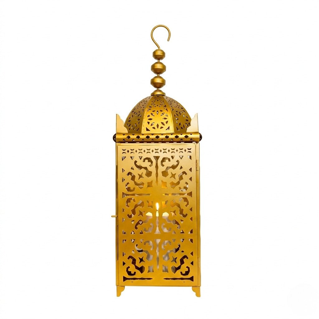 Illuminate your Ramadan décor with the captivating elegance of our Gold Masjid Lantern Collection. Each lantern features a beautifully sculpted dome inspired by traditional Islamic architecture, paired with intricate filigree panels that cast mesmerizing patterns of light across your space. Designed in four versatile sizes, these lanterns blend heritage craftsmanship with luxurious modern finishing.