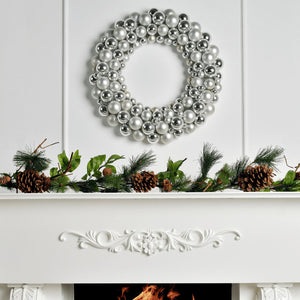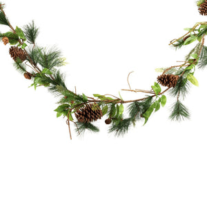 A traditional and classically beautiful holiday garland with festive pinecones that lays wonderfully on your stairway banister and atop your mantel elegantly adding that timeless festive nuance to your home this festive season.
