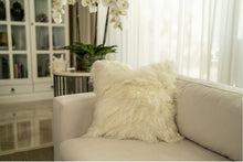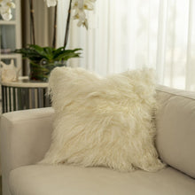 The handcrafted Tibetan fur covers a standard-sized pillow insert to create a unique pillow filled with lushness, dimension, and elegance.