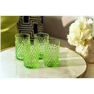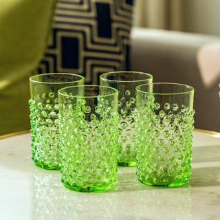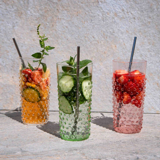 Radiant glassware with an intricate hobnail pattern, these hand-blown glass tumblers are perfect for all your summertime outdoor picnics, or for adding that touch of elegance to a simple gastronomy experience at home.