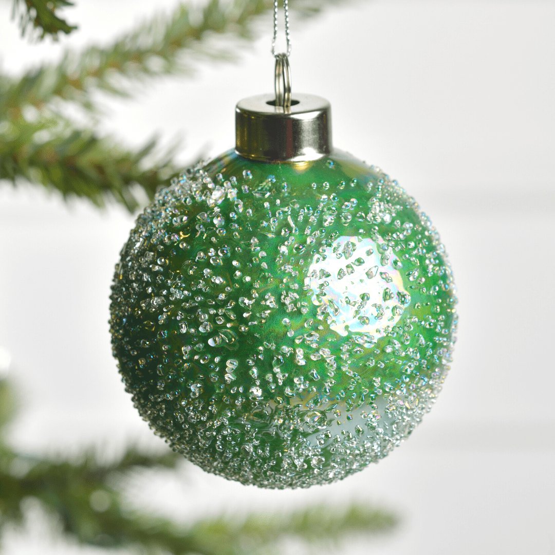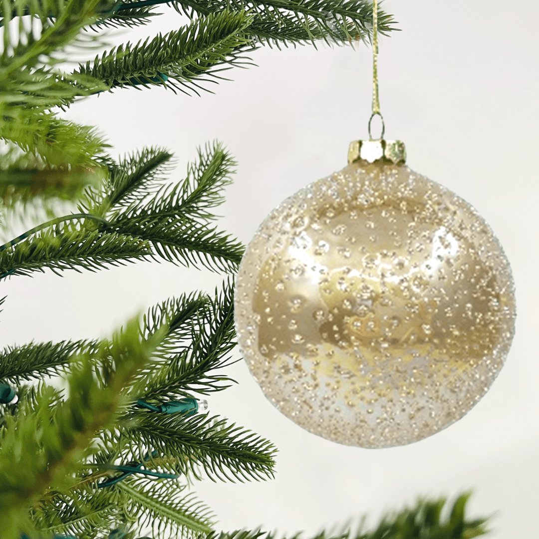 This luminous golden glass ball ornament with crystalline sugar beads is a splendid addition to your festive decorations this Christmas in Dubai, and will adds a mystic and magical touch to your celebrations!
