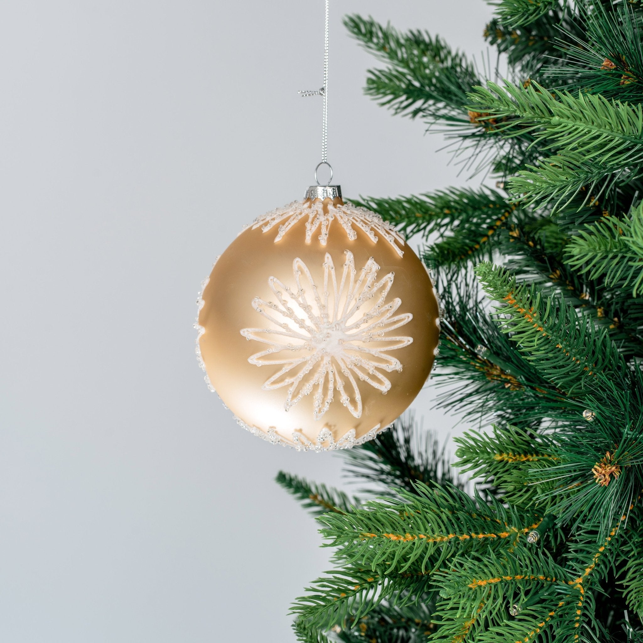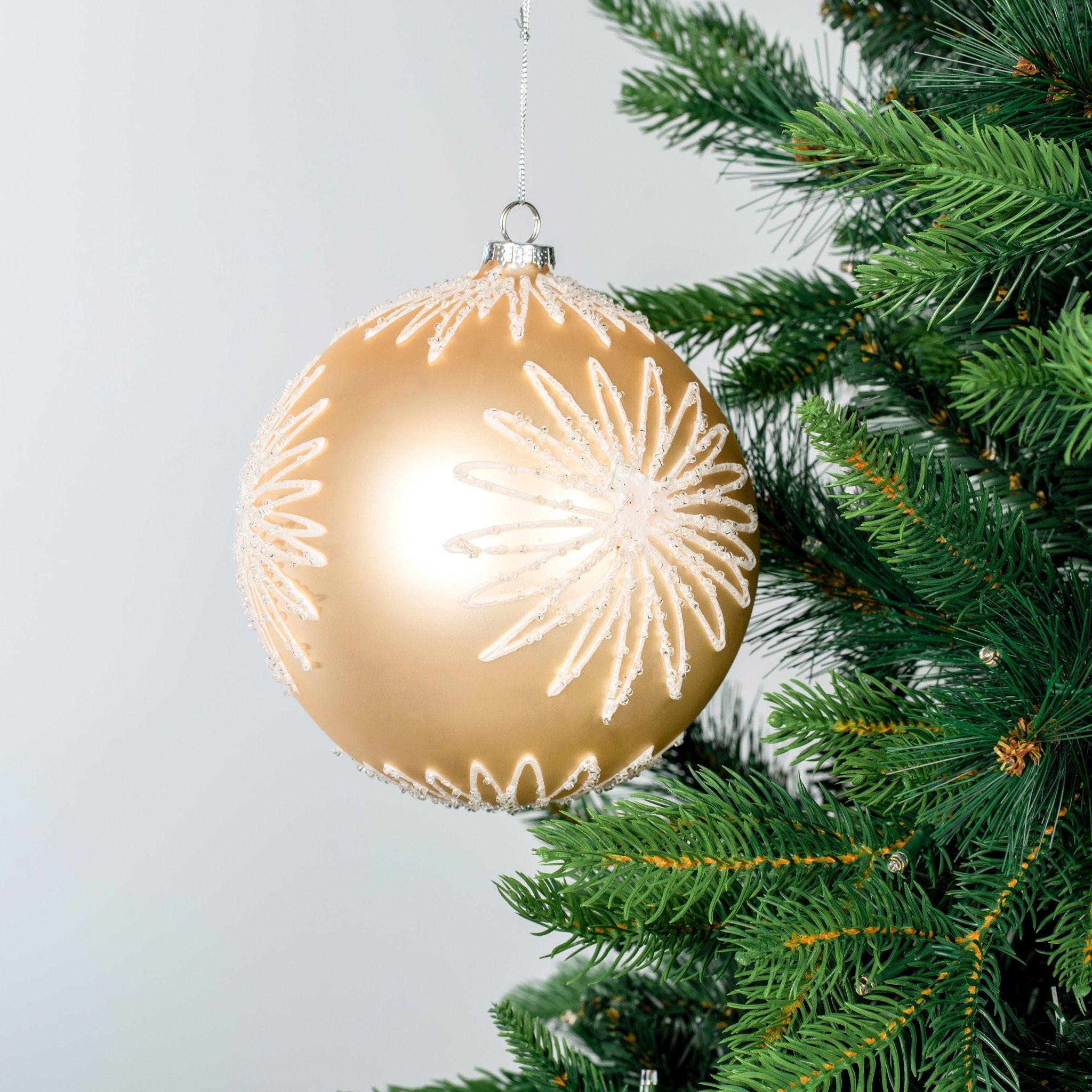 Matte Champagne Ball Ornament with White Glitter Blooms