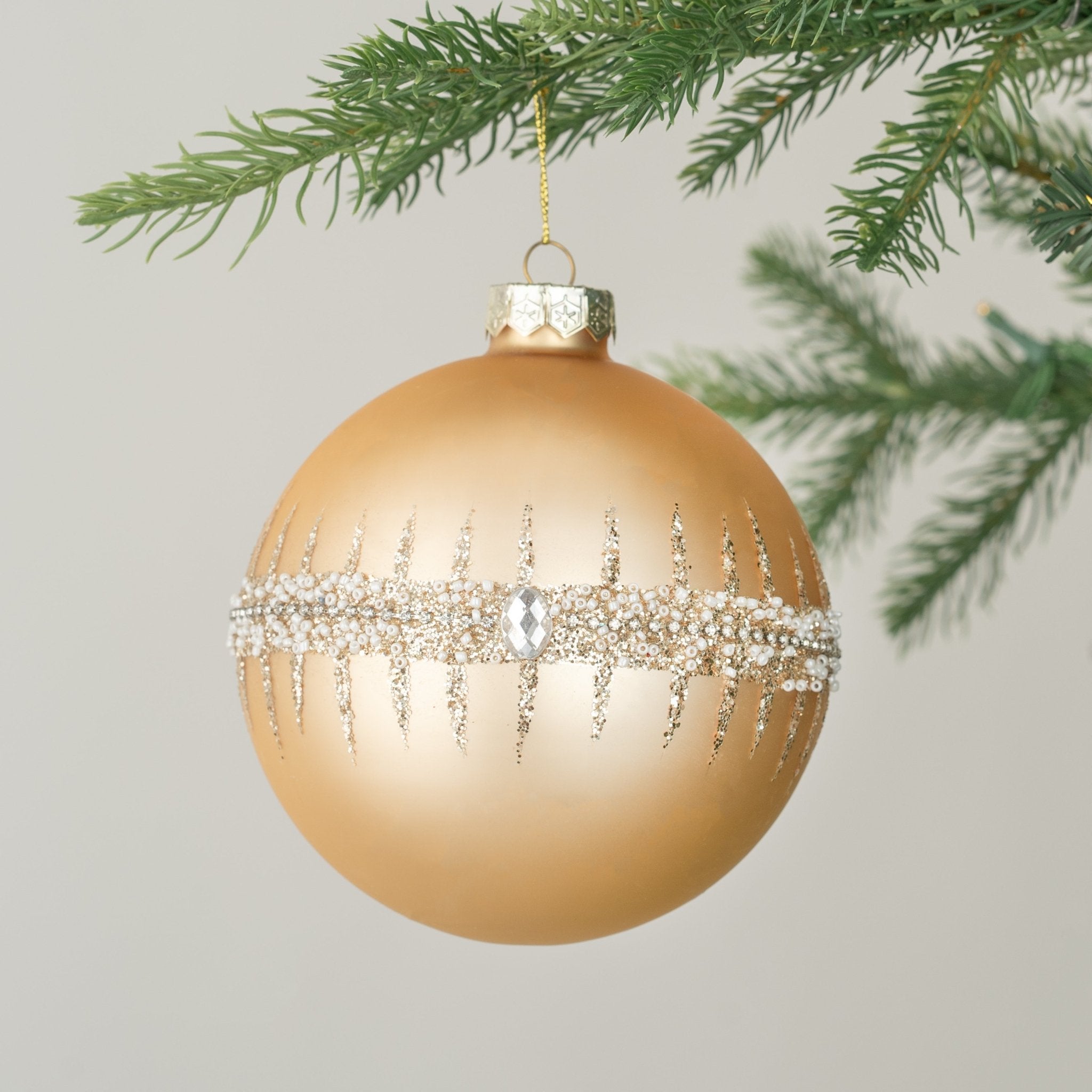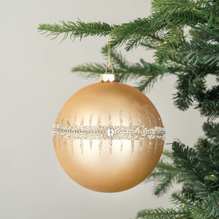 Give any holiday decor an elegant finishing touch with this matte gold ball ornament that feature a glitter-sparkled center. Each ornament is carefully crafted to ensure that a festive, exclusive look is achieved. Perfect for adorning a holiday tree, or to spread holiday cheer throughout the home.
