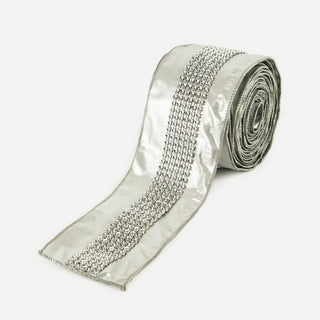 Add a touch of luxury to your decor with our Metallic Silver Diamond Beaded Ribbon. This exquisite trim features shimmering silver beads arranged in an elegant diamond pattern that catches and reflects light beautifully. Perfect for enhancing wedding decorations, holiday ornaments, gift wrapping, or home accents. The versatile design complements both modern and traditional aesthetics, instantly elevating any project with its sophisticated sparkle.