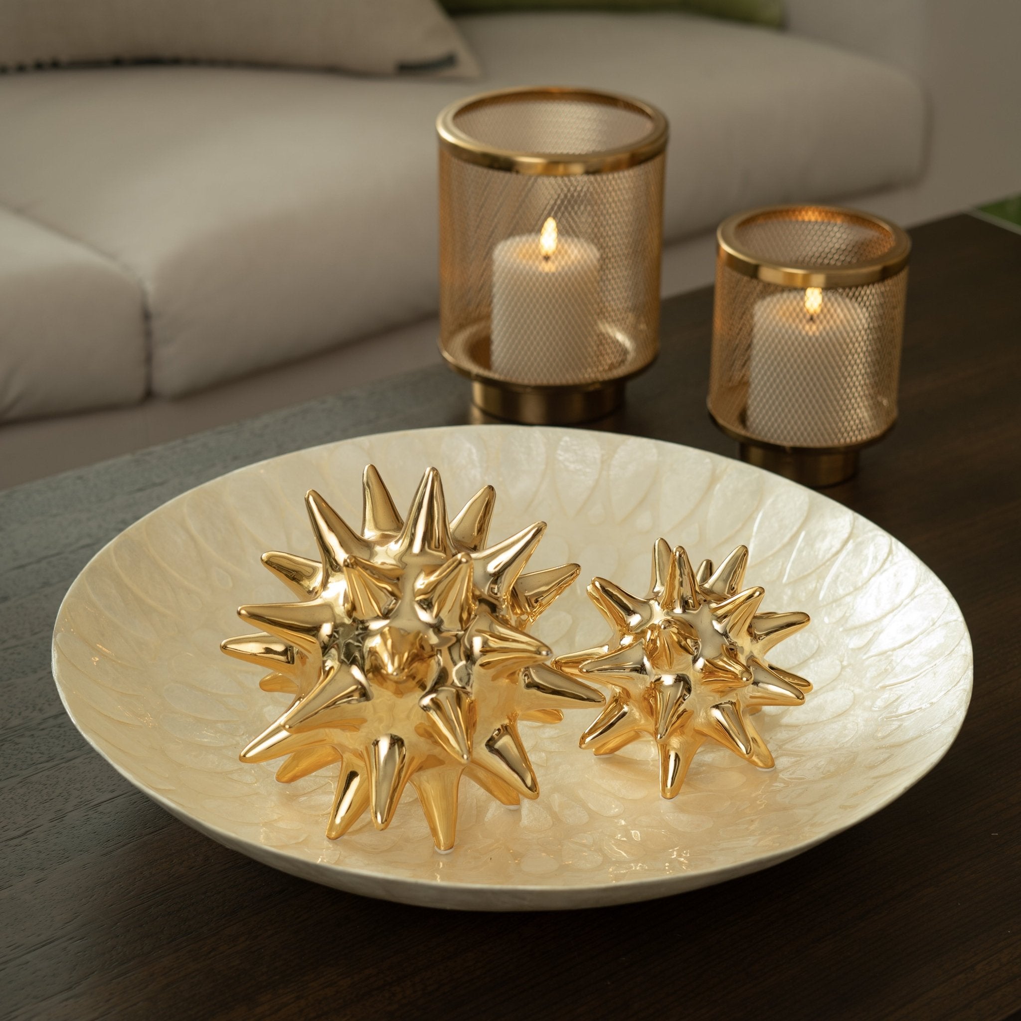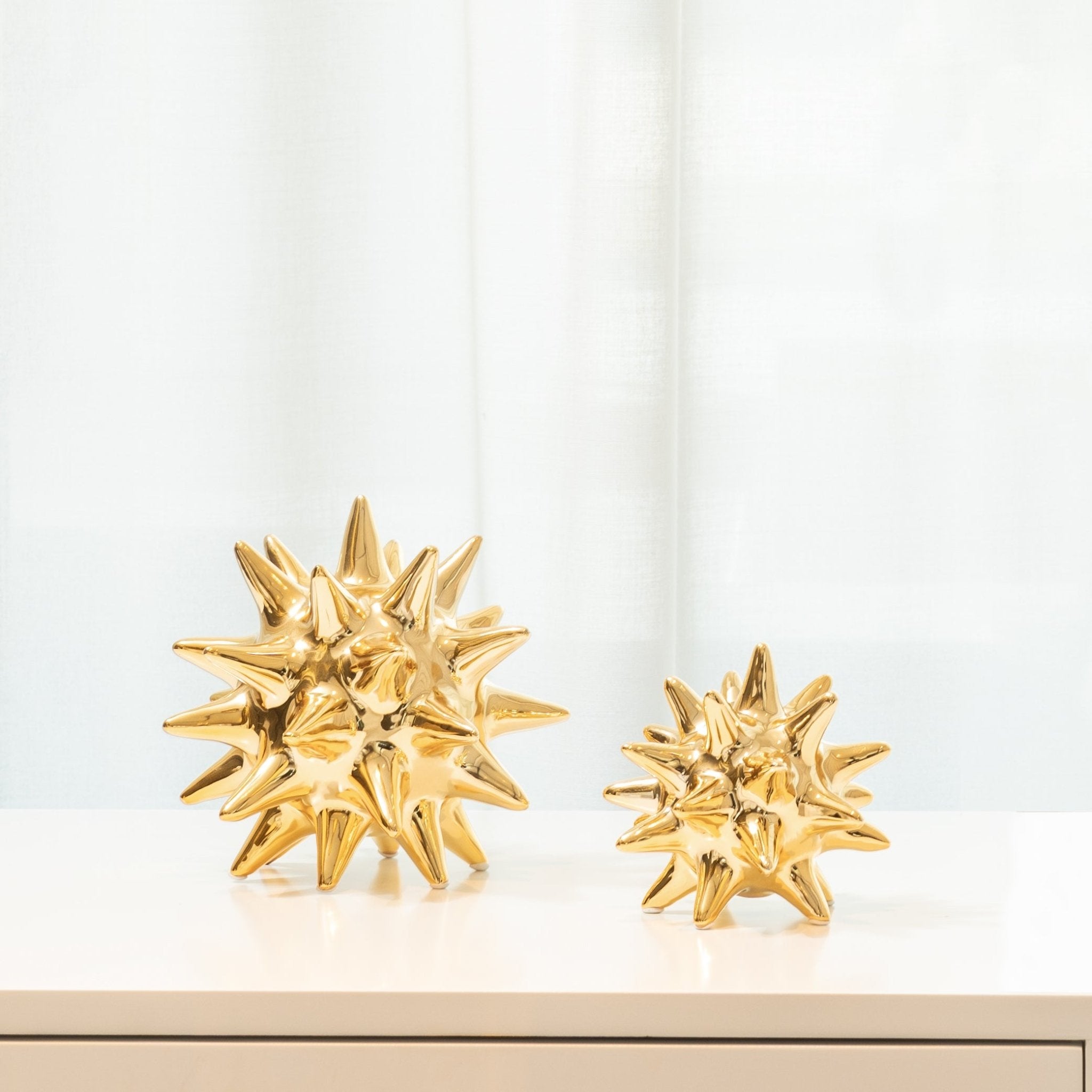Luxuriously crafted in ceramic, this orb is aesthetically pleasing and the gold finish makes it a standout décor piece. Use it as a tabletop accent or as an extra-large vase, you'll love its simple yet striking style.