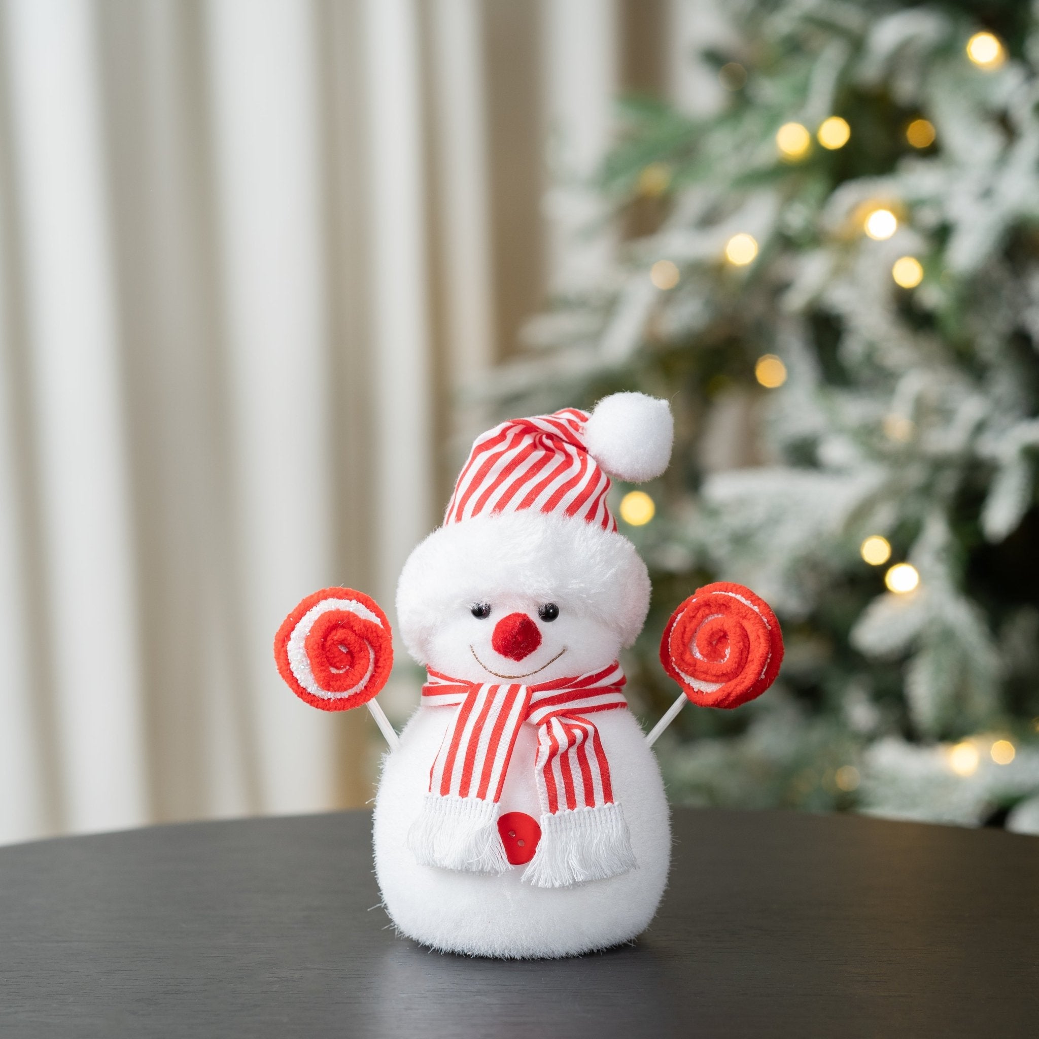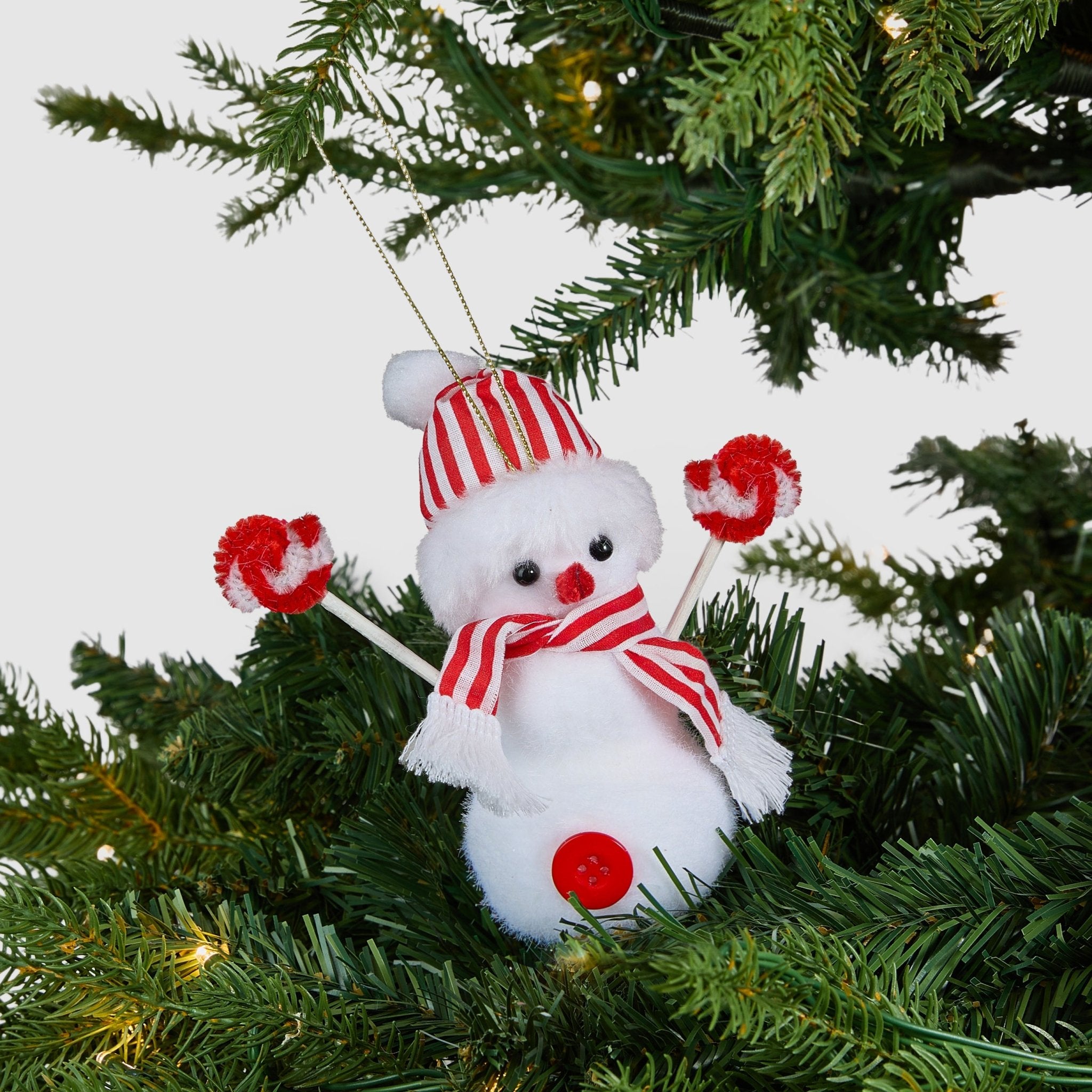 Red & White Striped Festive Snowman Tree Pick