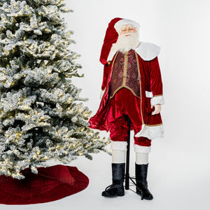Welcome the holiday season with our Festive Life-size Standing Santa. This luxurious decoration stands tall with a stand included. Made with premium materials, this Santa exudes elegance and charm. Bring a touch of sophistication to your home this season with our Festive Santa.