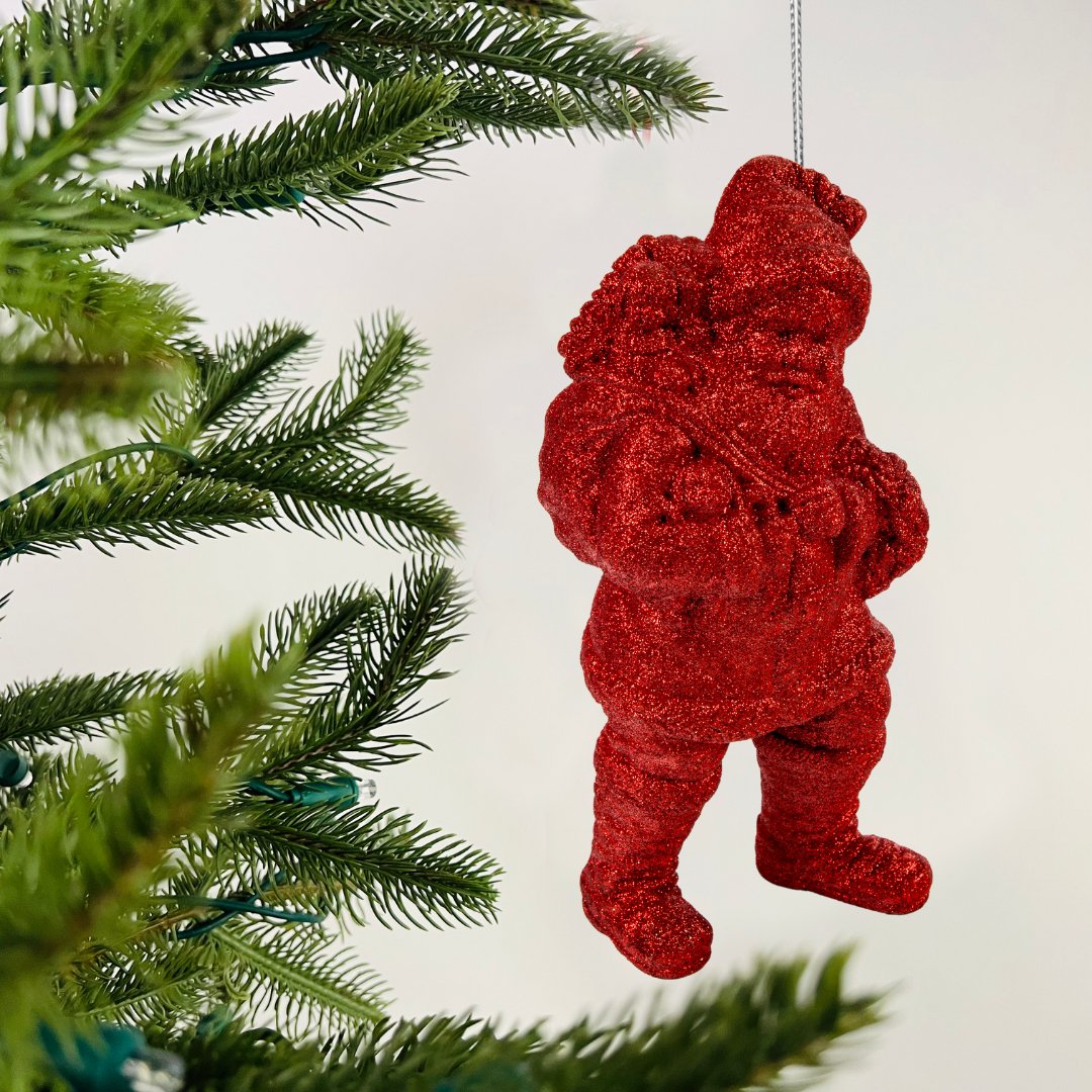 Indulge in the holiday spirit with our Shiny Red Glittered Santa Claus Ornament. This stunning ornament boasts a shiny red finish with enchanting glitter details, perfect for adding sparkle and joy to your Christmas tree. A must-have for any festive home, make a statement this holiday season with our premium ornament.