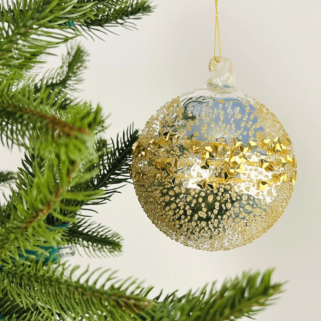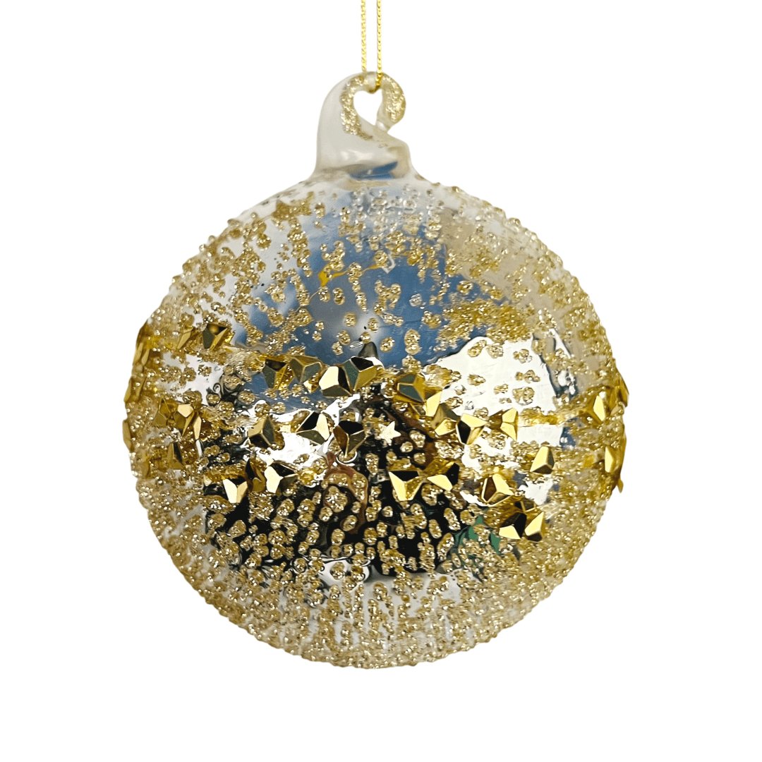 A classic festive silver metallic ball ornament with splendid gold sugar bead detailing that adds to the beauty of your festive decorations this festive season in Dubai. Regardless of your festive decoration theme, this classic ornament will add an unparalleled merry opulence to your decorations.