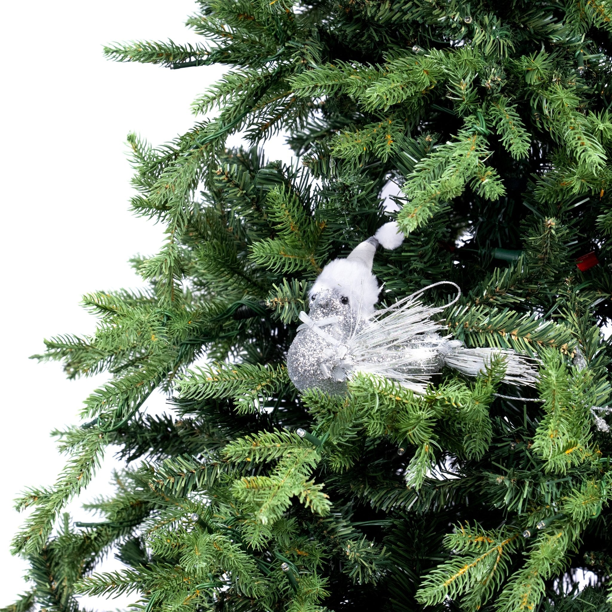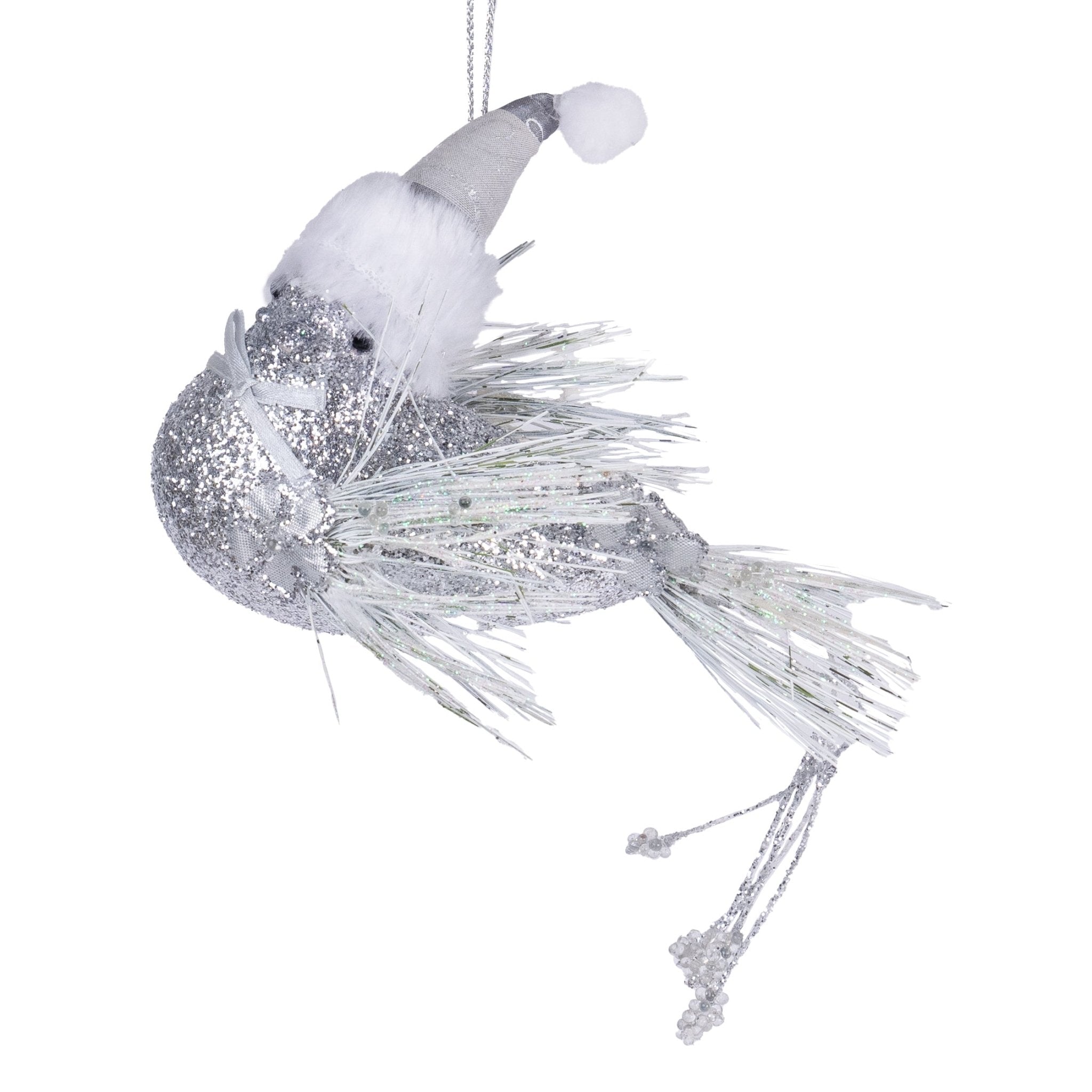 Add a touch of elegance to your holiday decor with our Silver Snow Sparrow Clip-on Ornament. Crafted with delicate silver feathers, this exquisite ornament will add a touch of sophistication to any tree or garland. Simply clip it on and let it bring a touch of luxury to your home this season.