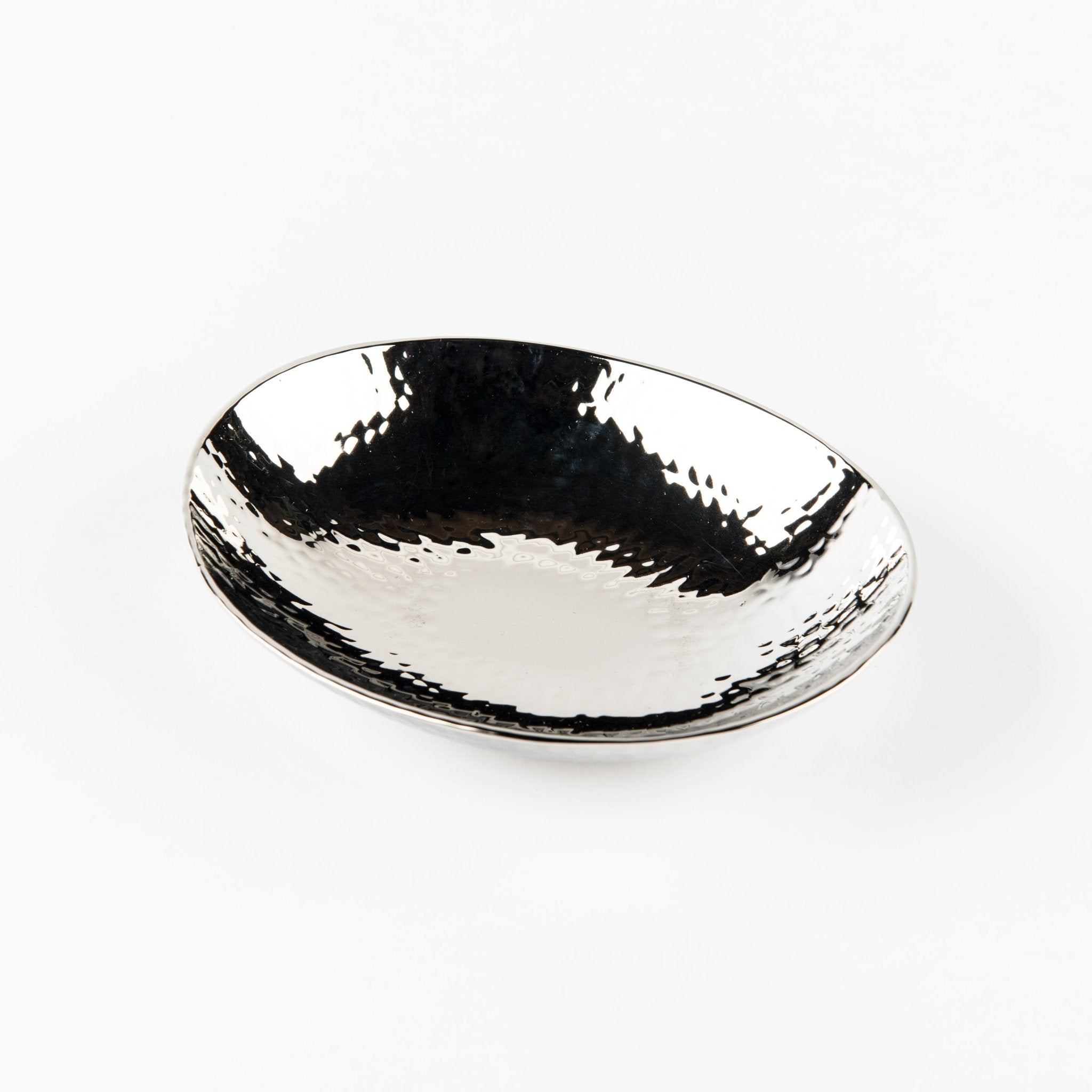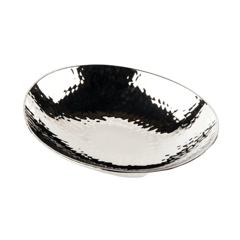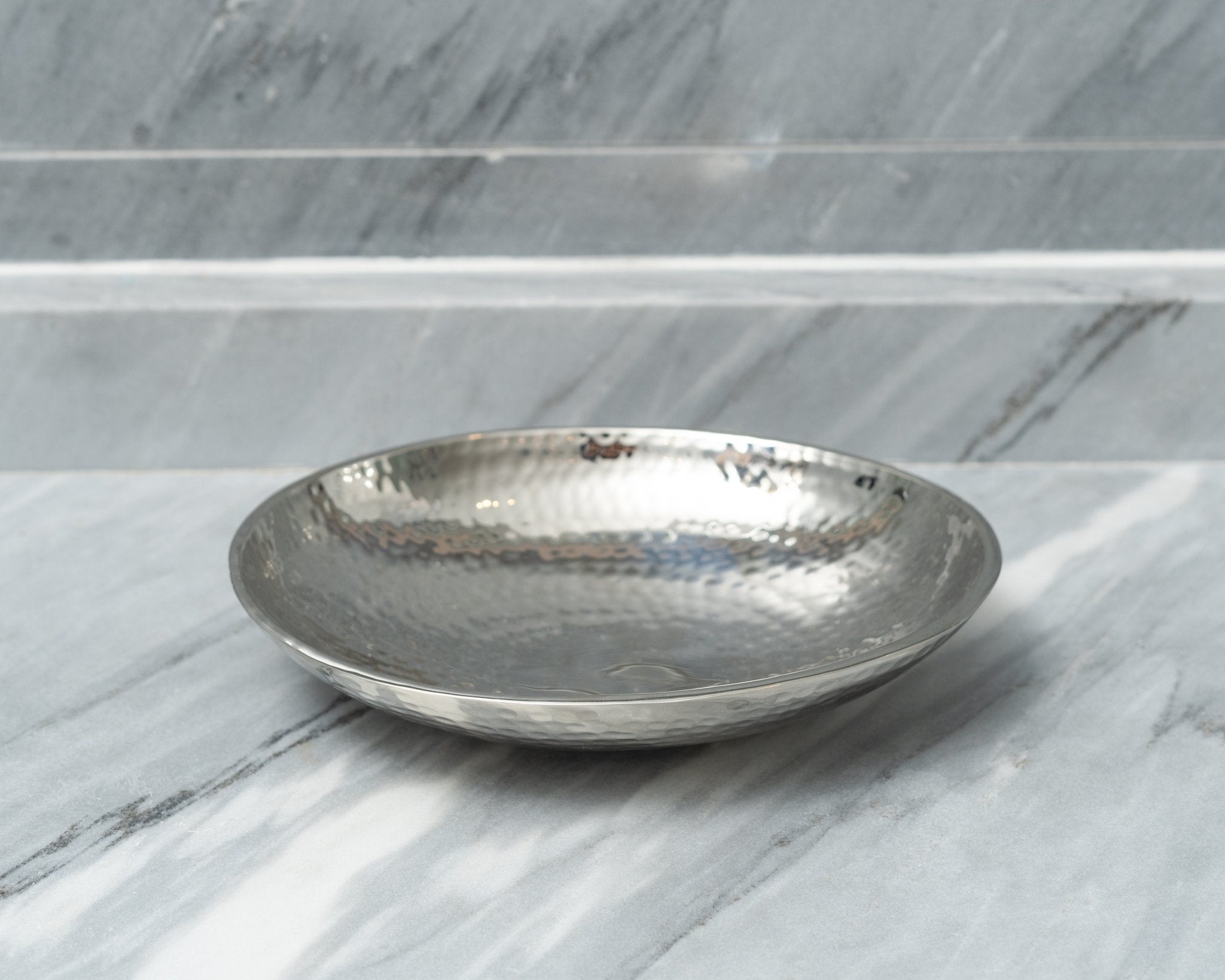 Each piece is individually hand-made from stainless steel and hammered nickel which is then sculpted and polished to perfection. This classic 7" Soap Dish is a great way to add design flair to your bathroom.