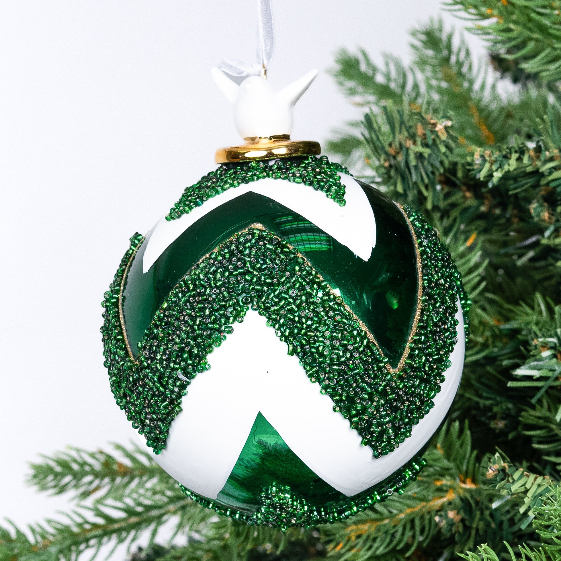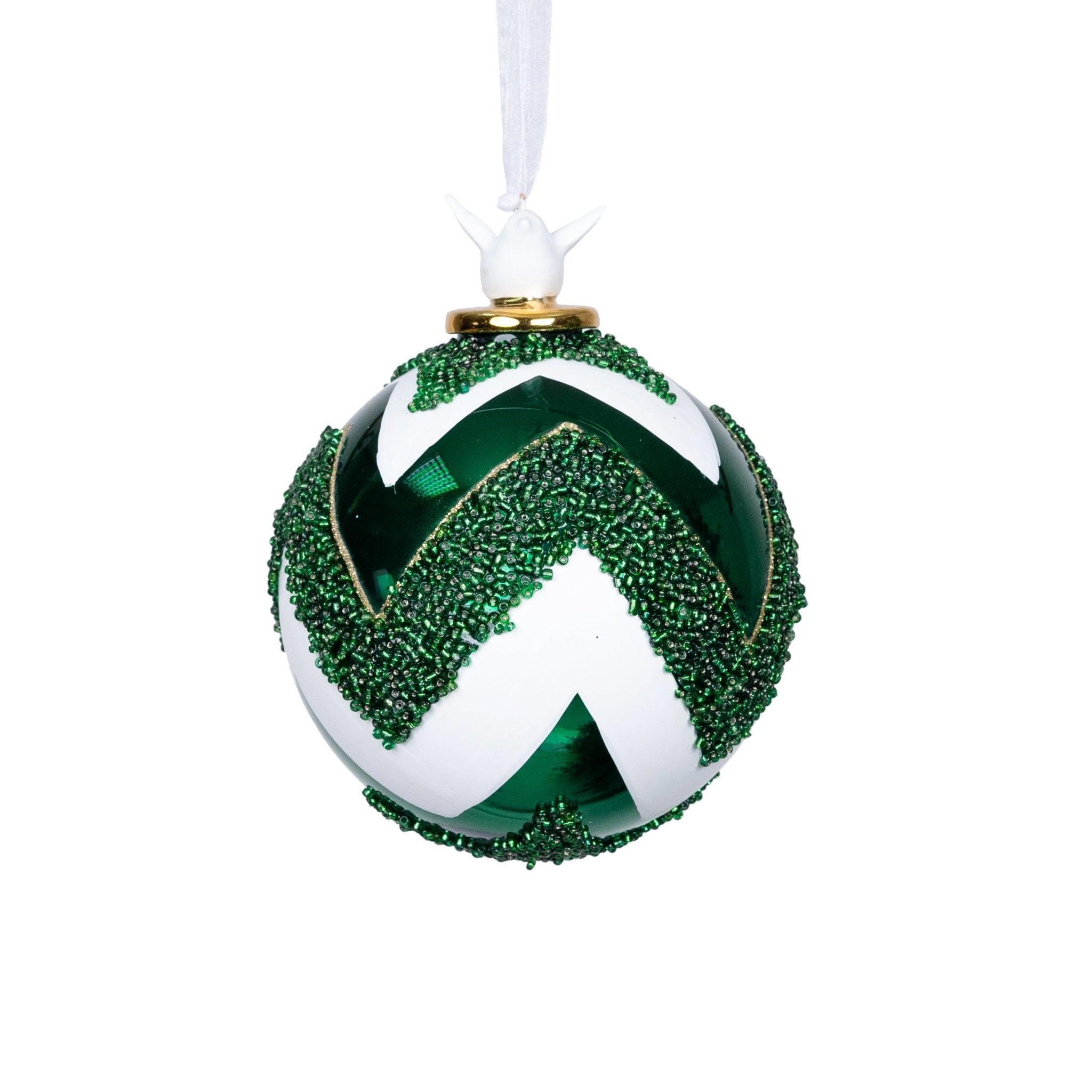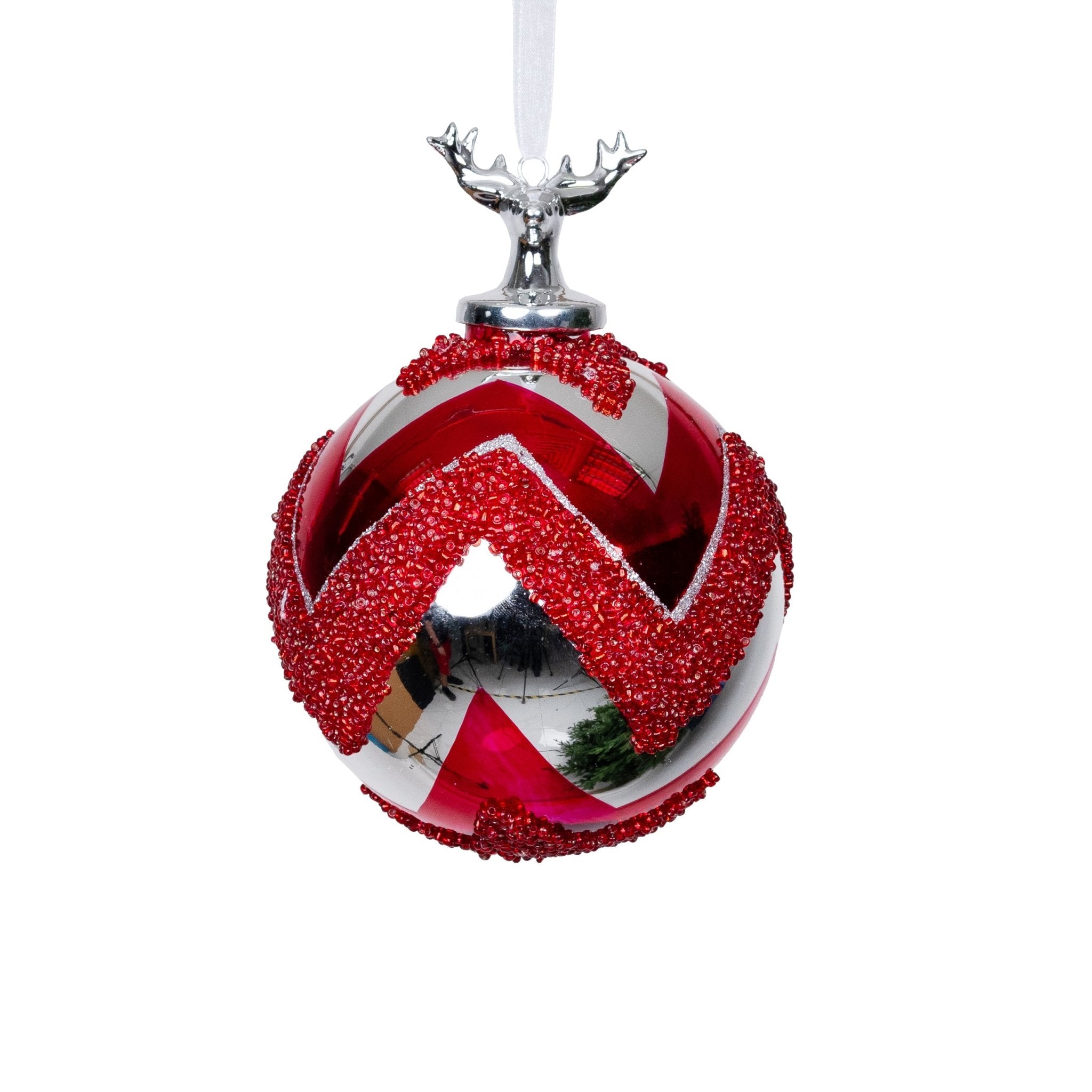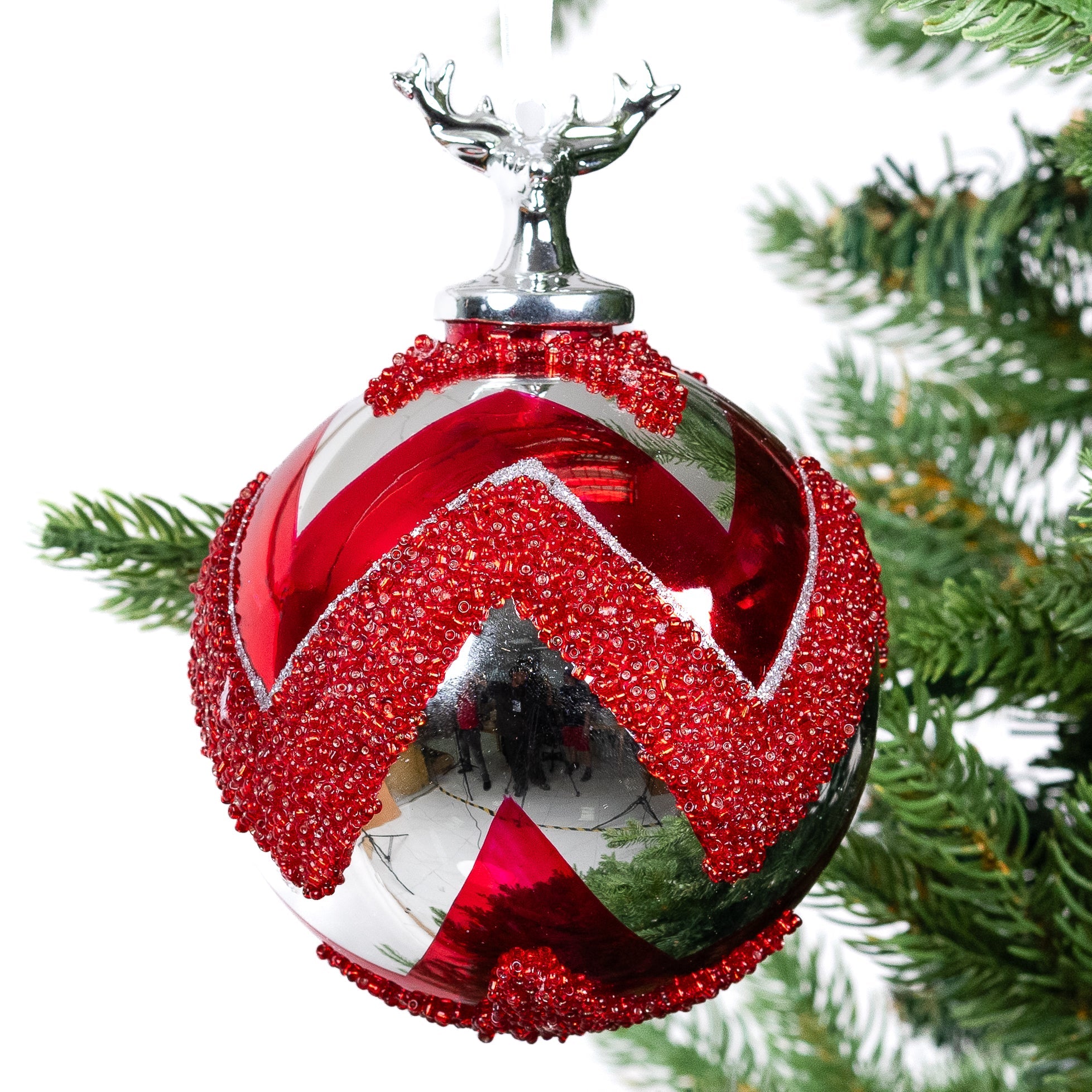 Add a touch of elegance to your holiday decor with our Top Ball Ornament adorned with glitter. The shimmering detail will bring a luxurious and exclusive feel to your tree, making it the focal point of your room. Elevate your festivities with this tasteful and sophisticated holiday accessory.