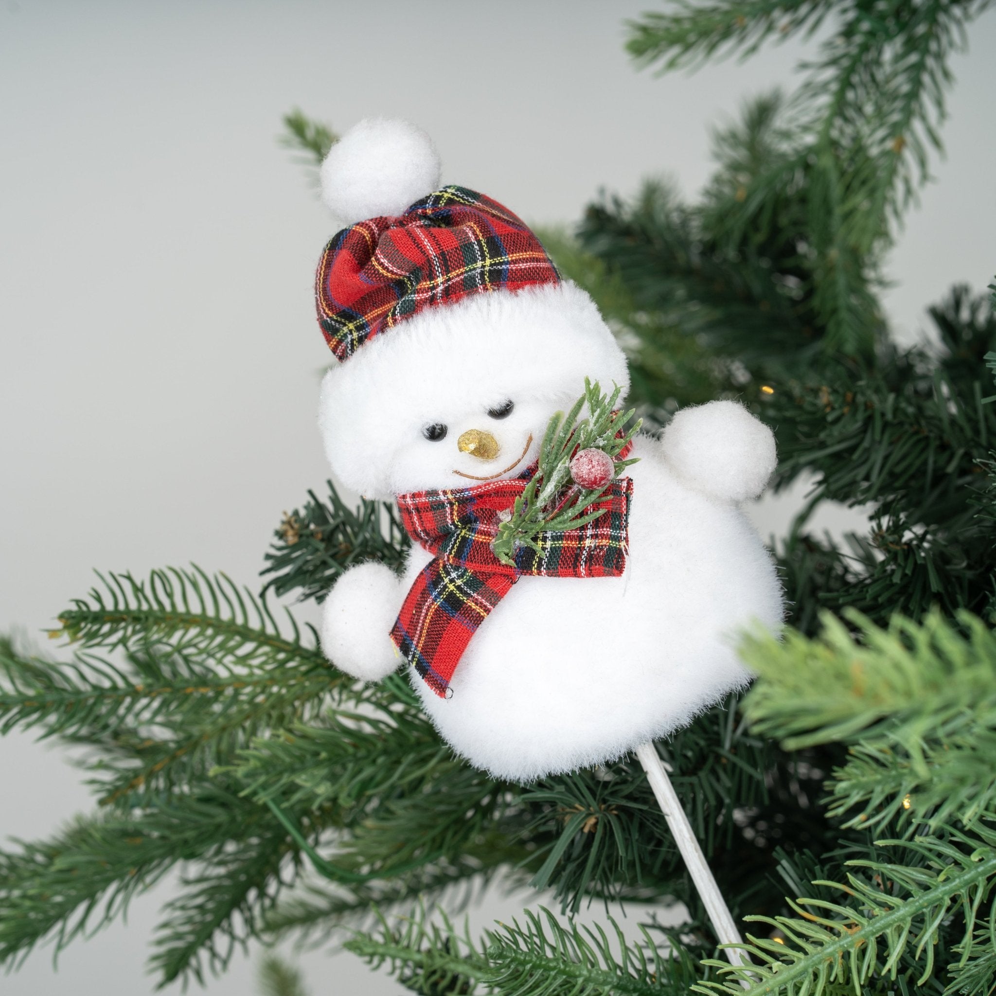 Traditional Checkered Snowman Christmas Tree Pick