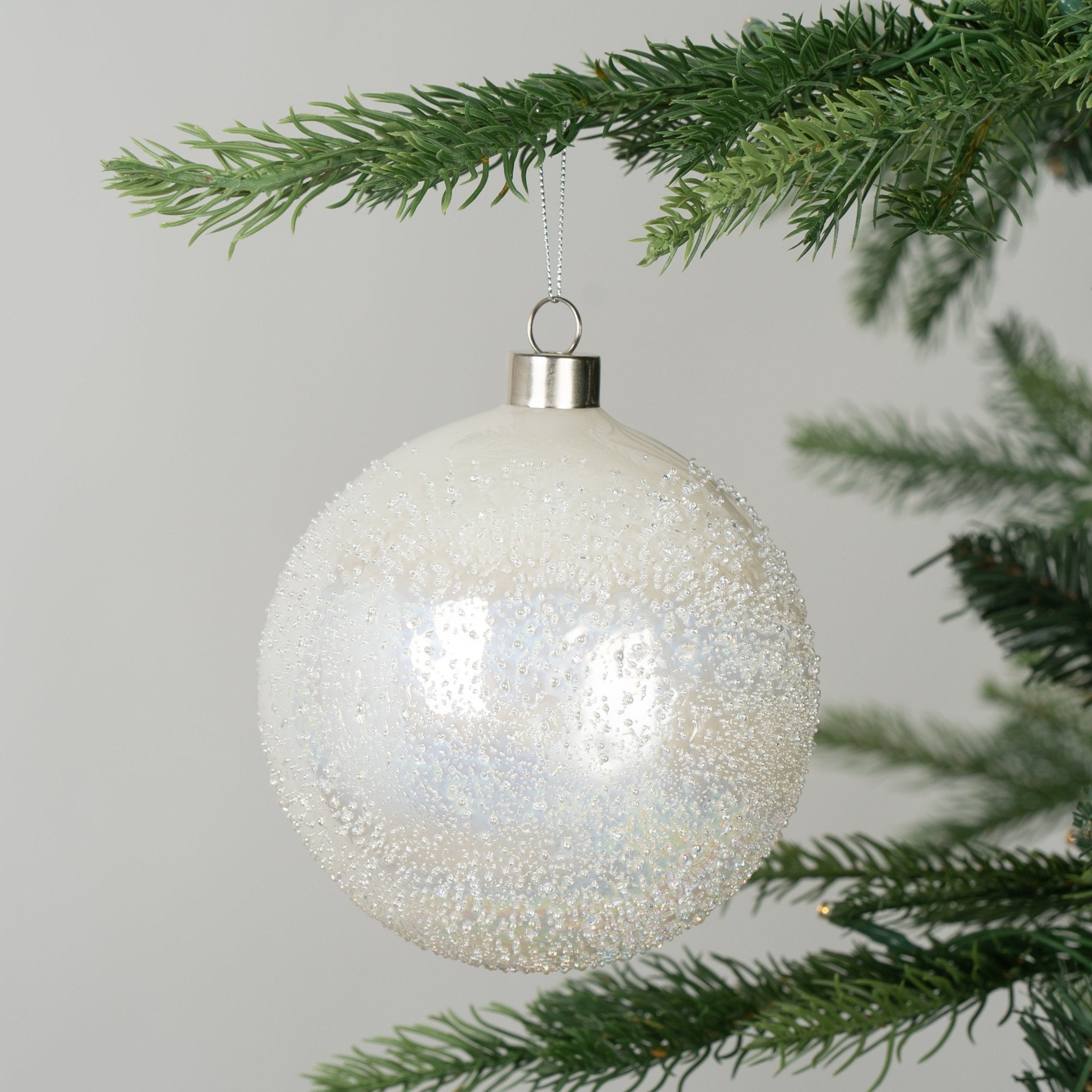 This iridescent white glass ball ornament with crystalline sugar beads is a splendid addition to your festive decorations this Christmas in Dubai and will add a mystic and magical touch to your celebrations!